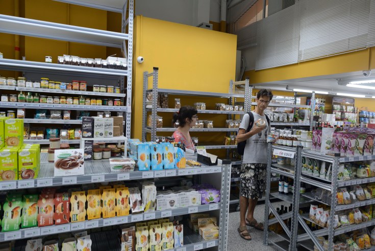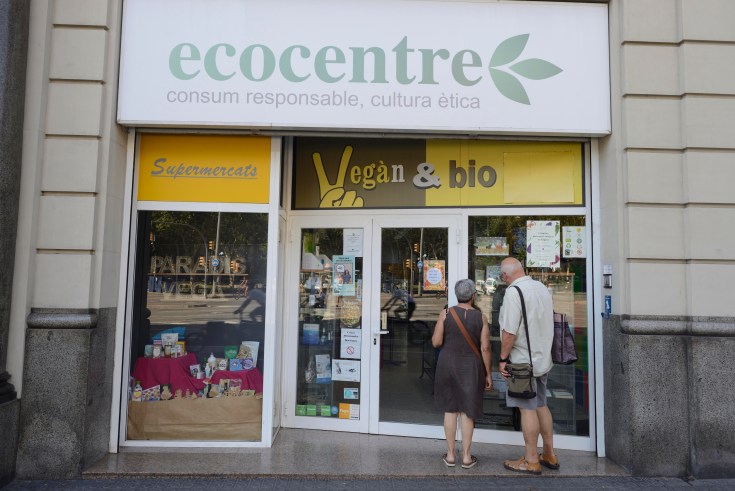 Pues los productos que más éxito tienen son los sustitutos de la carne, de los embutidos y del queso. Y esto tiene una explicación y es porque, además de estar bien ubicados en una zona céntrica de Barcelona, somos una tienda muy especializada. Aquí mucha gente viene a comprar lo que no encuentra en un supermercado convencional. Nosotros tenemos productos que prácticamente sólo se pueden encontrar aquí. Algunos son de importación, otros más cercanos pero que se encuentran en muy pocos sitios. Viene gente de fuera de Barcelona y del área metropolitana. Gente que viene de Mataró, Sabadell, Vic, Igualada o, incluso, personas de Castellón, Tarragona, Aragón o Andorra. También se pueden comprar por Internet pero a la gente le gusta venir y preguntar. Además, en esta tienda, se sienten a gusto porque saben que todo es vegano.